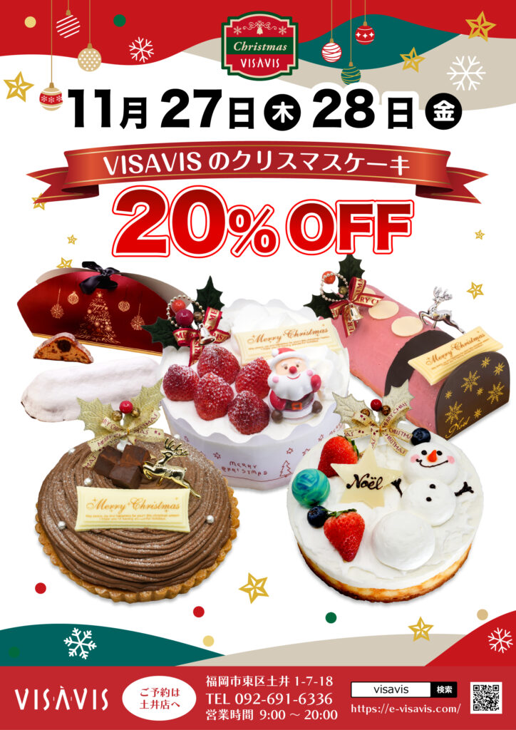 土井店にて クリスマスケーキ全品20%OFF の特別イベントを開催します!